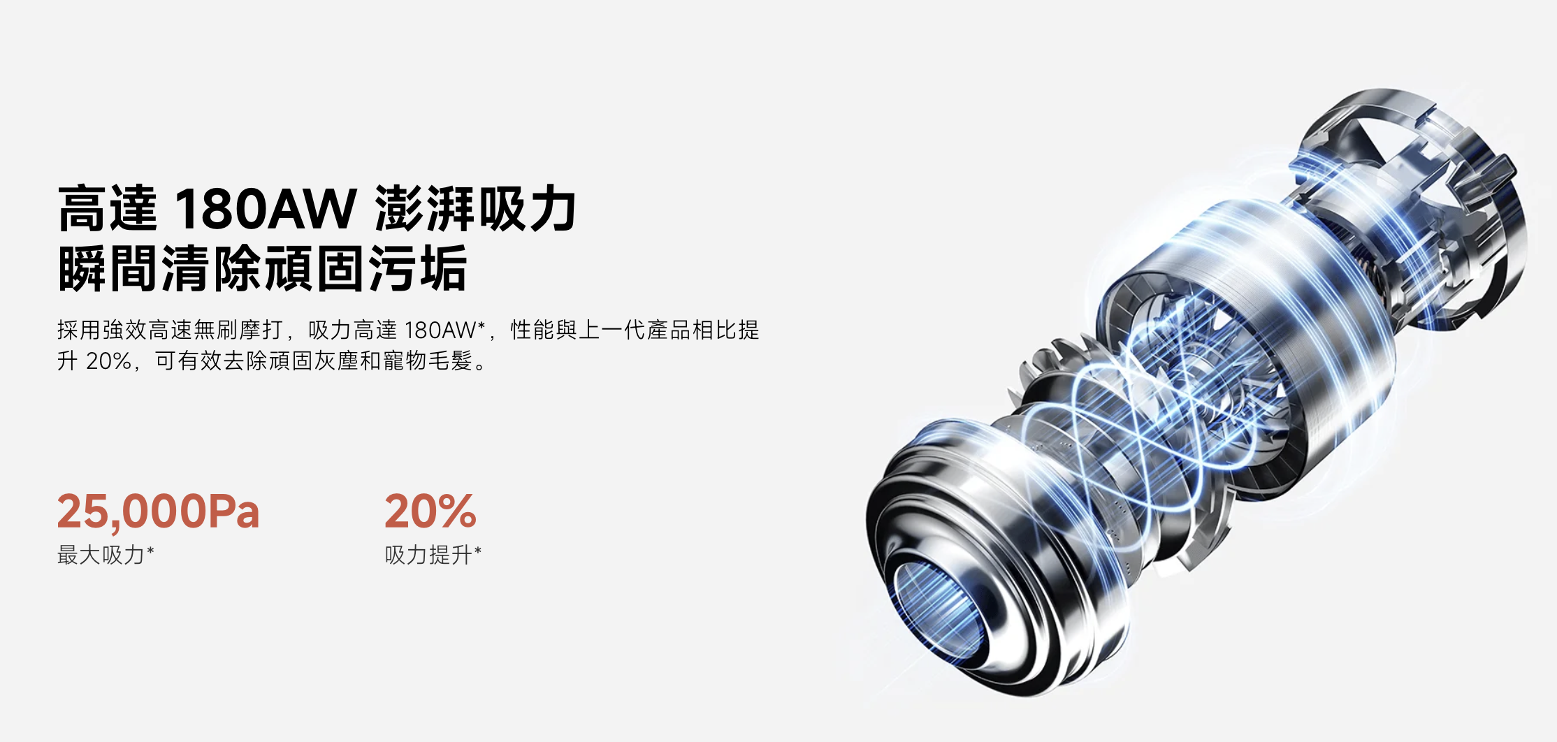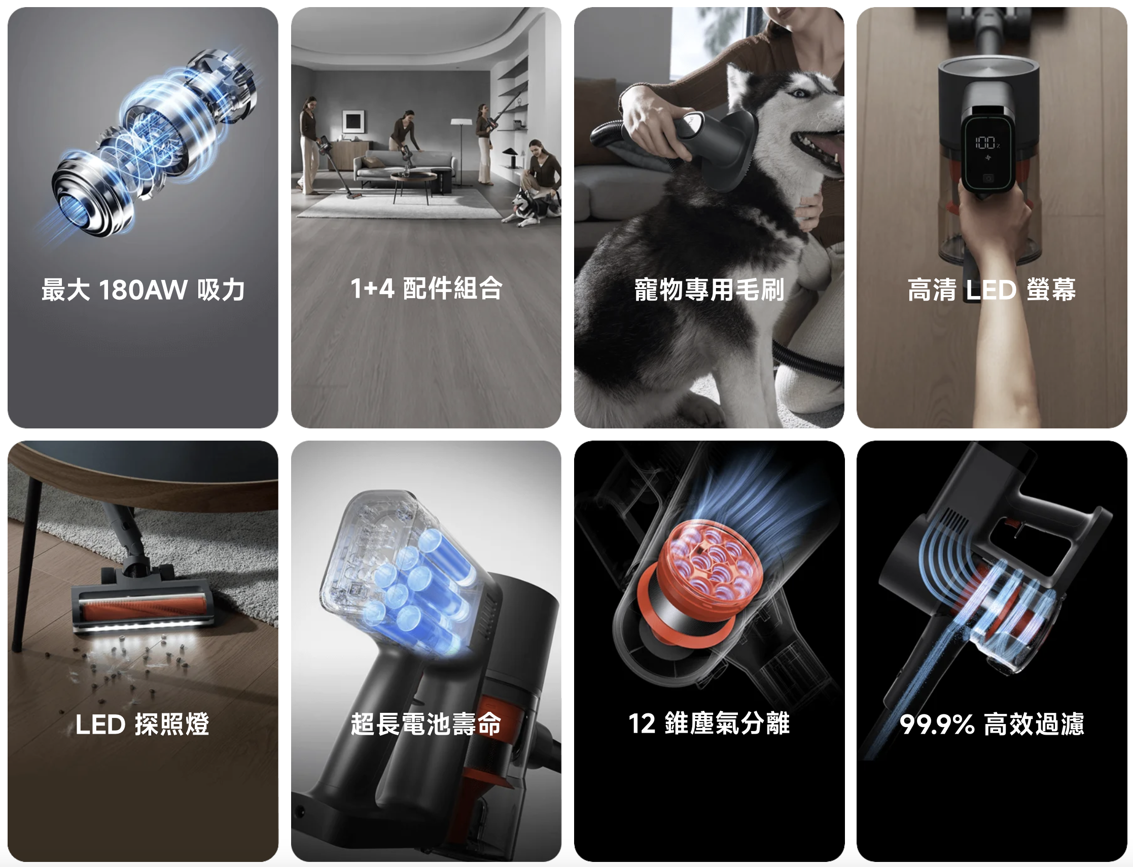 1. 高效能技術:高達 180AW 澎湃吸力,LED 高清彩色螢幕;