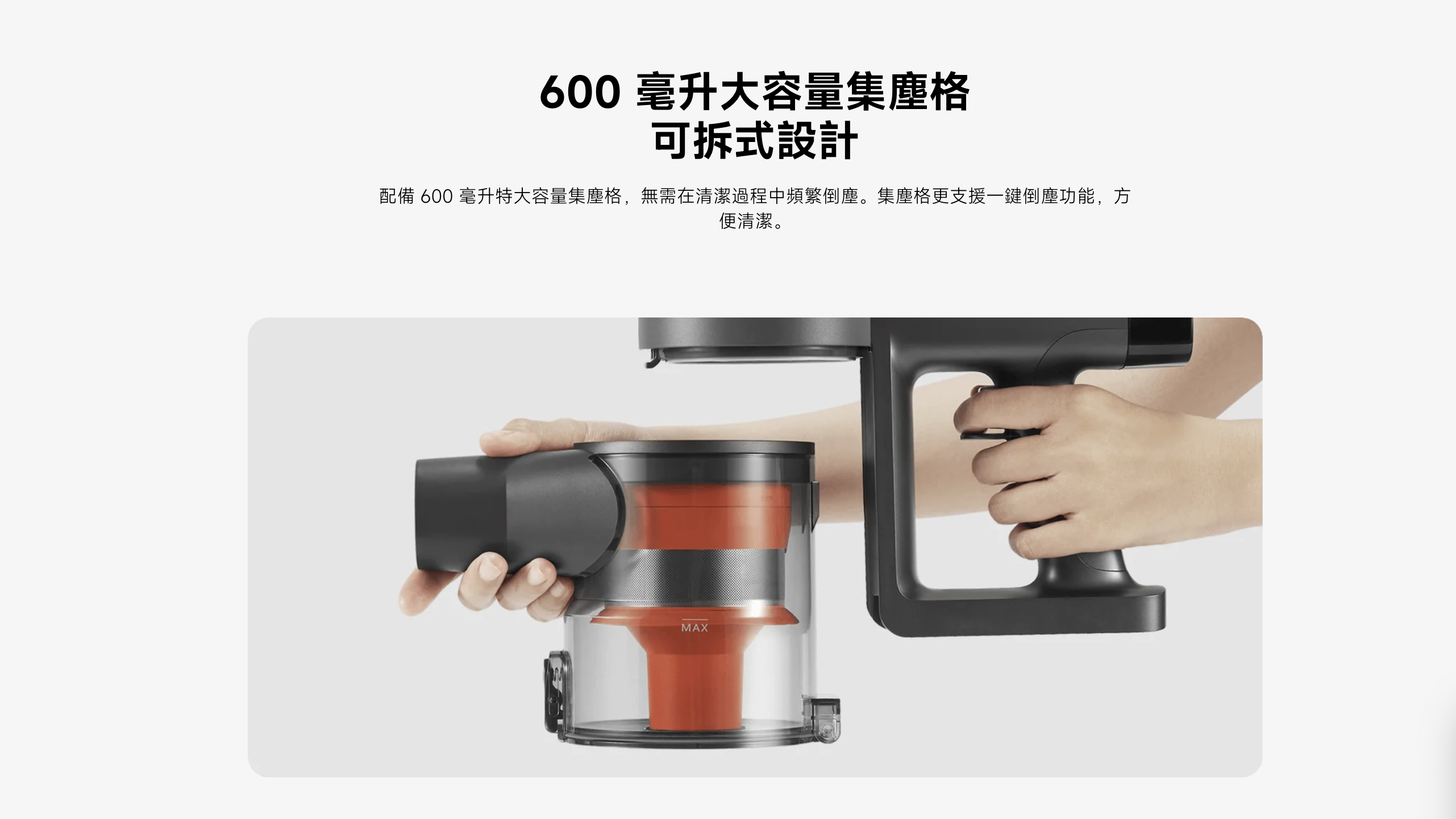 4. 600 毫升大容量集塵格,可拆式設計,可水洗過濾組件;