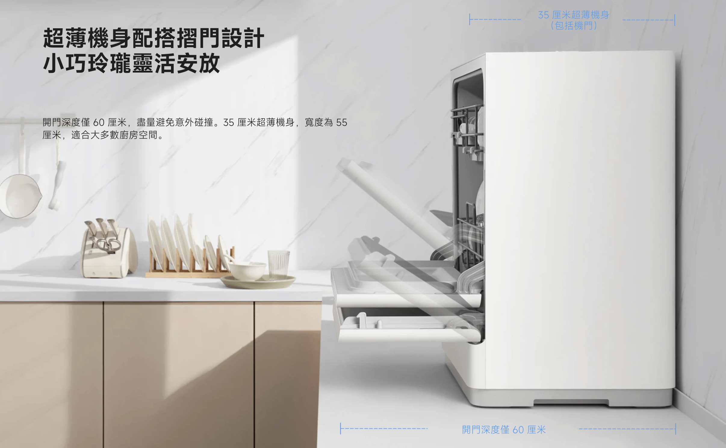 35 厘米超薄機身,寬度為 55 厘米,